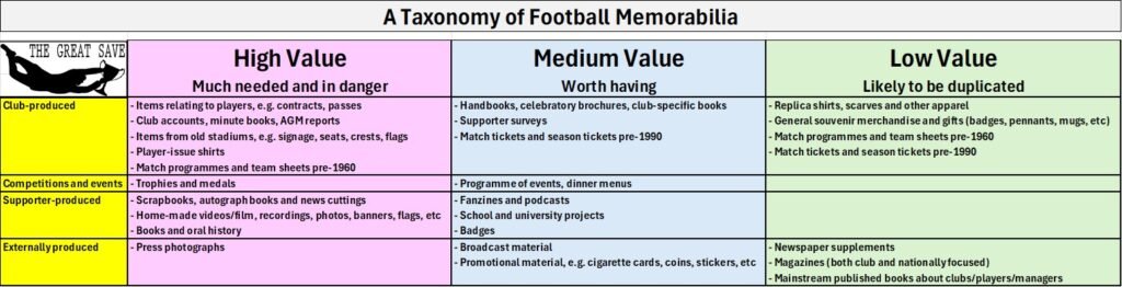 As a guide to items that we think are at risk and worth saving, we’ve created colourful version of our taxonomy…